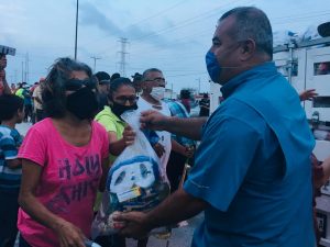 Fue alrededor de las 19:30 horas cuando por fin después de tanto espera, las despensas fueron entregadas a las personas formadas, primeramente a los adultos mayores y a las personas con alguna discapacidad.