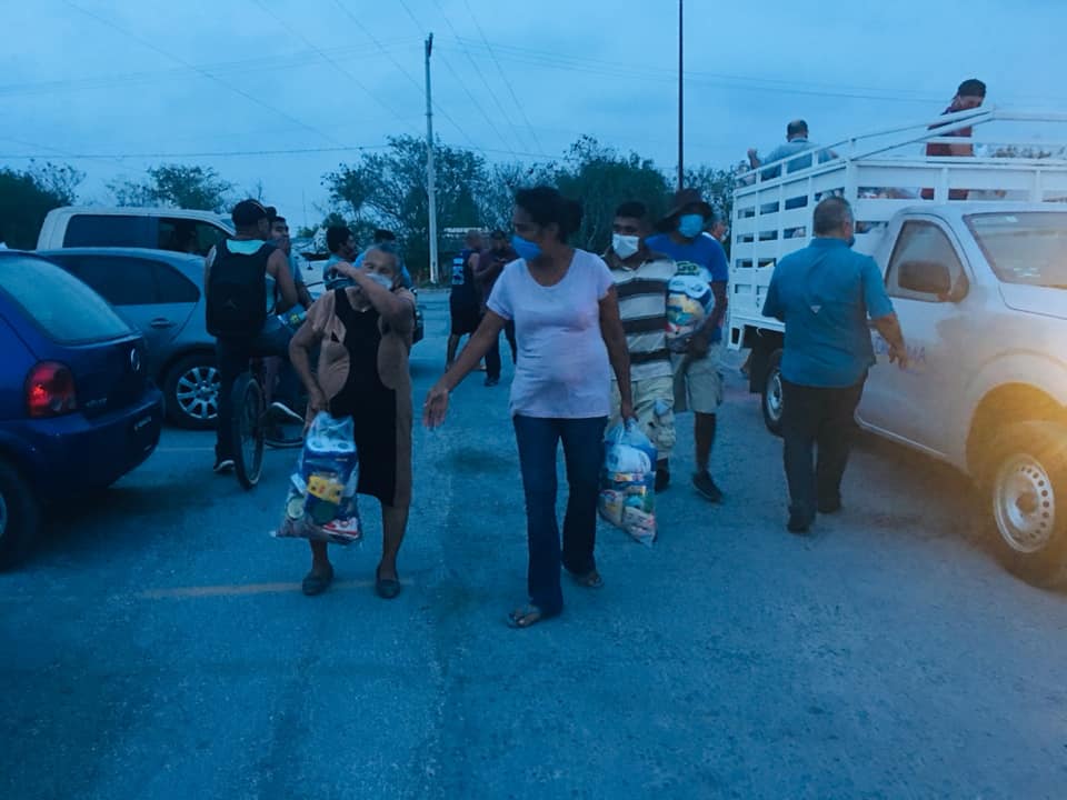 Caía la noche cuando adultos mayores y personas discapacitados fueron los primeros en pasar por su bolsa de alimentos, la cual la Fiscalía General de Justicia de Tamaulipas tuvo resguardo durante 24 horas tras el decomiso el pasado lunes de 1250 despensas en el filtro del ejido Francisco González Villarreal.