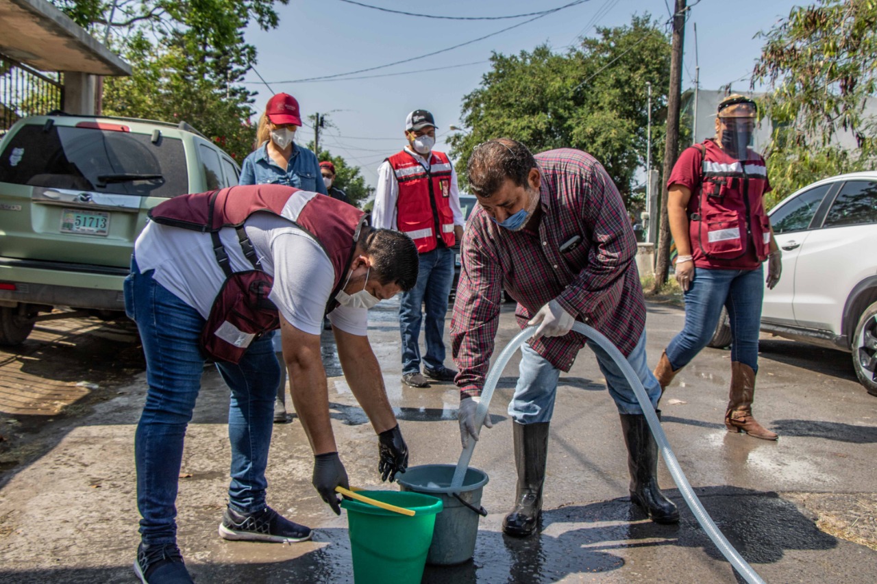 Este viernes continuaron los trabajos de sanitización, ahora correspondió a la colonia Bertha del Avellano, en donde suman esfuerzos diversas dependencias municipales.