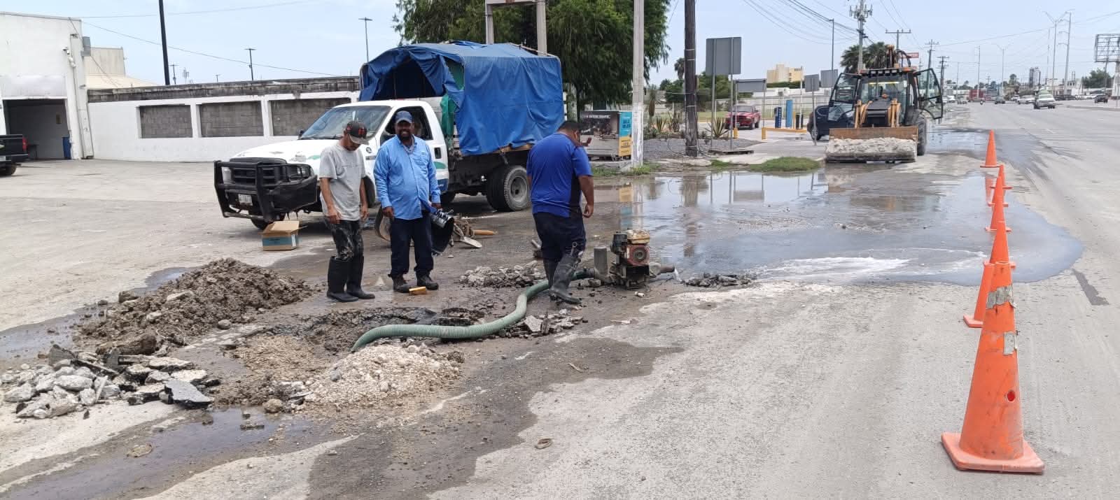 El Gobierno Municipal de Matamoros, a través de las cuadrillas de la Junta de Aguas y Drenaje, realizó trabajos de reparación de una importante fuga de agua en el cruce de la Avenida Pedro Cárdenas y Amado Nervo. La acción forma parte del compromiso permanente con el mejoramiento de los servicios públicos en beneficio de la comunidad.