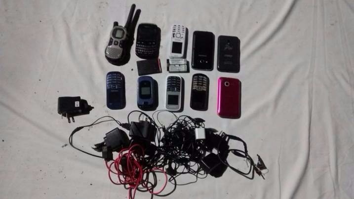Una pala de albañil, partes diversas de celulares, una pistola de madera, una cortadora de pelo, cinco cargadores de celulares, dos grabadoras, un alaciador de cabello, 173 encendedores, tres cadenas, una máquina chapoleadora, una parrilla eléctrica y un horno de microondas, entre otros objetos.