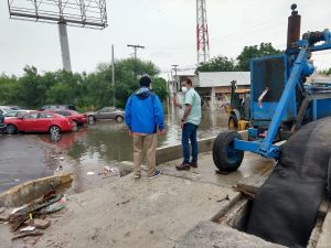 También constató los trabajos que realiza el personal de la Junta de Aguas y Drenaje en colonias anegadas, entre ellas, Los Sauces, una de las zonas más afectadas con las precipitaciones pluviales.