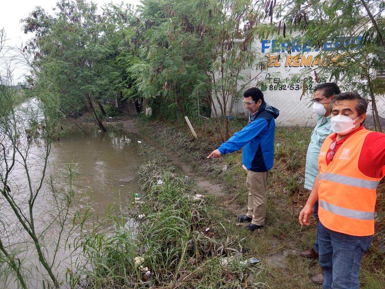 Visitó algunos de los principales drenes de la ciudad, en donde hubo necesidad retirar tapones de tierra que impedían el flujo del agua, entre ellos, el Dren conocido como Periférico y más hacia el sur de la ciudad el Emisor Principal, a la altura de la avenida Portes Gil.