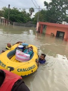 Claudia Romero, de la fundación Ayuda Humanitaria de Reynosa, recordó como desde la mañana del domingo, voluntarios se dieron cita en las zonas mas bajas para comenzar a rescatar a quien se quedo atrapado en sus viviendas.