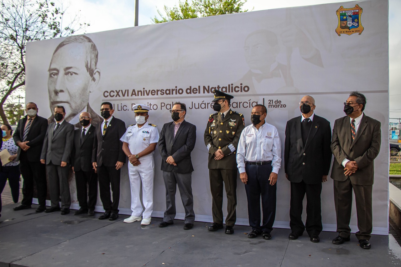 Este lunes por la mañana autoridades educativas, civiles y militares recordaron con admiración y respeto la obra transformadora y la vida caracterizada por la modestia de Don Benito Pablo Juárez García, en el marco del 216 aniversario de su natalicio.