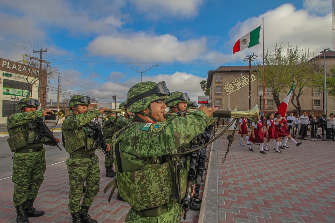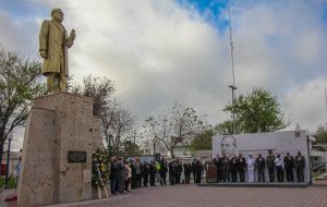 En la ceremonia se realizaron honores a la bandera, presentación del escudo de Tamaulipas y se colocó ofrenda floral en el monumento dedicado al Benemérito de las Américas.