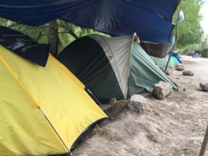 El espacio de la zona federal ha sido insuficiente para poner más casas de campaña en el campamento, han tenido que recurrir al bordo del Río Bravo al piso de tierra para instalar un espacio donde vivir, donde tener sus cosas.