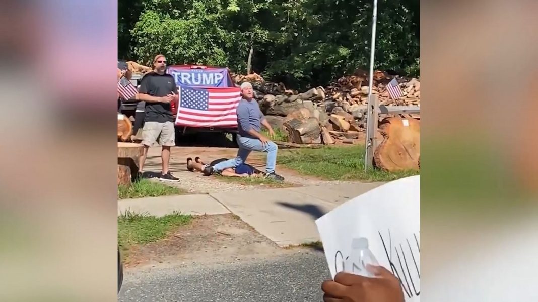 Partidarios de Trump, incluido un oficial de correcciones de Nueva Jersey y un empleado de FedEx, se burlan de los manifestantes al recrear la muerte de George Floyd, mientras el alcalde de la ciudad los califica de «rebeldes».