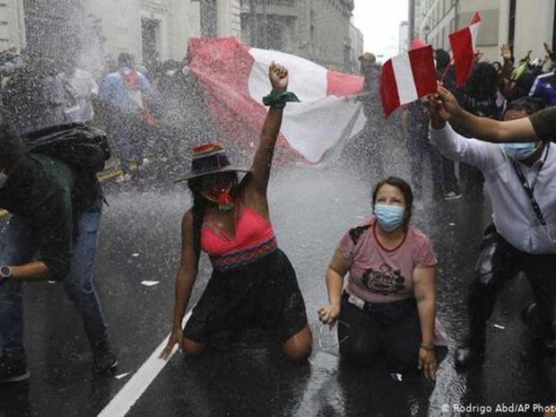 También hubo marchas en el distrito turístico de Miraflores, en el sur de Lima, y en varias otras ciudades peruanas en rechazo a Merino, el jefe del parlamento que asumió como presidente de Perú el martes, al día siguiente de que fuera destituido el popular mandatario Martín Vizcarra.