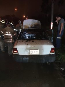 Un automóvil tipo Saturno color blanco se incendió hace unos momentos en la carretera Sendero Nacional a la altura de la entrada de la facultad de la UAT.