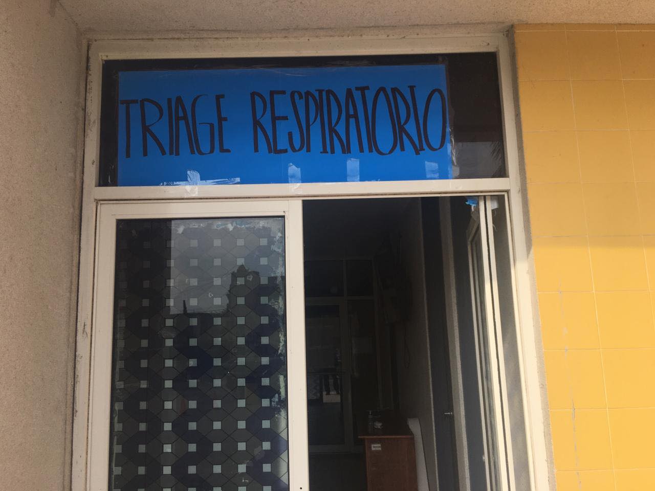Dos doctores, un termómetro, gel antibacterial y un pizarrón con oraciones conforman el centro de Triage Respiratorio que el Hospital General Alfredo Pumarejo improviso en lo que fue hasta el fin de semana su área de Pediatría y donde ahora se atienden a personas que llegan con síntomas de coronavirus.