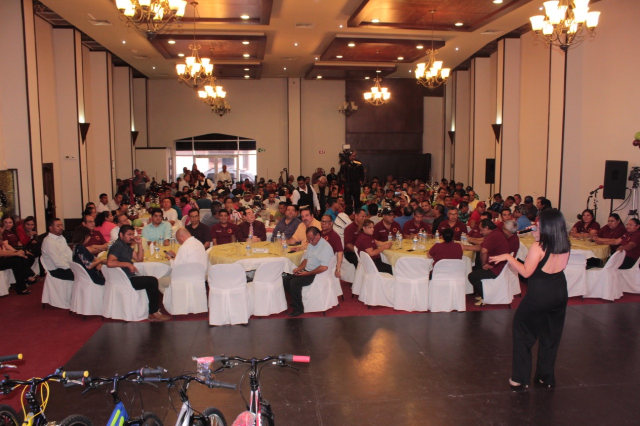 El teatro-auditorio “Joaquín Gamboa Pascoe” fue bellamente adornado especialmente para esta ocasión en que se ofreció un almuerzo, muchos números artísticos y muchísimos regalos a los agremiados del SITPME.