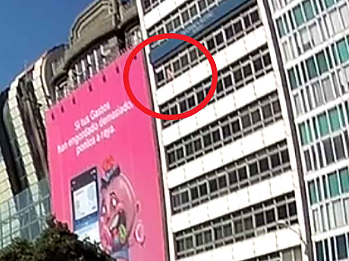 Los hechos se registraron en el edificio número 6 de Cantones, junto al emblemático obelisco de la ciudad de Galicia y, una de las personas que se encontraba presenciando todo logró captar la caída de 20 metros de altura.