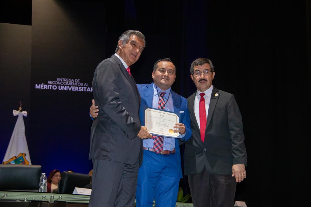 El rector de la Universidad Autónoma de Tamaulipas (UAT), MVZ Dámaso Leonardo Anaya Alvarado, felicitó a docentes, investigadores, estudiantes y trabajadores que este año merecieron el Reconocimiento al Mérito Universitario, quienes, por su trabajo y dedicación, son el orgullo de la máxima casa de estudios de la entidad.
