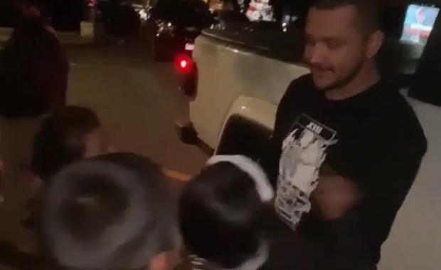 Chrstian Nodal y Belinda compran mazapanes a niños al salir de un restaurante tras una cena romántica.