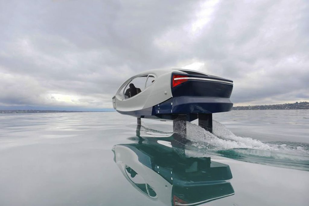 El taxi, que parece una versión náutica del coche DeLorean en “Regreso al Futuro”, es una idea del navegante francés Alain Thebault. No hace ruido ni olas y tampoco emite CO2.