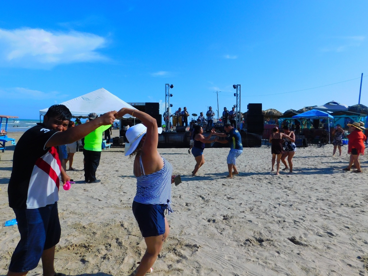Este sábado se presentaron los grupos: “Angel Norteño”, “La Máquina del Sabor” y “Los Rayitos del Norte”, quienes desde el escenario instalado en la orilla de la Playa, interpretaron canciones que motivaron a los asistentes a bailar con gran entusiasmo.