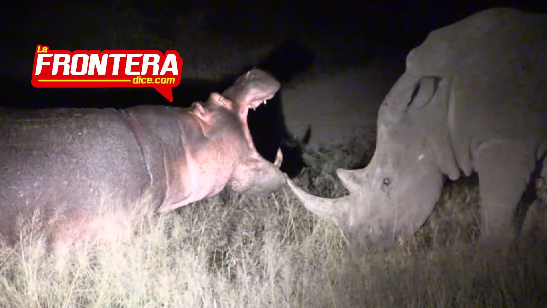 En las imágenes se puede ver como un hipopótamo desafía a un rinoceronte mostrándole persistentemente los dientes y olfateándolo, hasta que el cornudo animal se cansa de las provocaciones y sin aparente ánimo de ataque pincha ligeramente al hipopótamo y se retira de la escena.