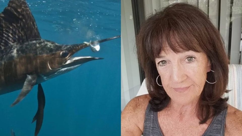 Una jornada tranquila de pesca terminó en un día tenso. Katherine Perkins fue atravesada por la afilada y larga punta del hocico de un pez vela, mientras se preparaba para tomar la foto del animal de 100 libras (45 kilos, aproximadamente) que acababa de pescar junto con otros dos amigos.
