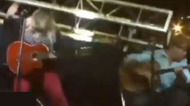 En esta ocasión los hechos ocurrieron el pasado 19 de septiembre durante la celebración del Día del Chamamé en Corrientes, Argentina, cuando una pareja de hermanos cantantes realizaba una presentación cuando inesperadamente se cae la parte superior del escenario. El momento pudo terminar en tragedia, sin embargo, no pasó mayores.