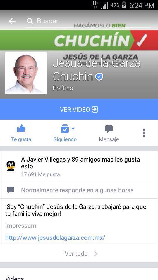 Chuchin como lo conocen, cabe de mencionarse que en las elecciones pasadas contendió por la diputación federal y ganó, pasando medio año por la ambición de seguir viviendo del dinero del pueblo abandonó su cargo burlandose de los que confiaron en el aún conociendo de sus maňas, pues Jesus de la Garza, hasta en las redes sociales va perdiendo ya que el cuenta hasta ahora con 17 mil 691 likes.