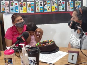 «Mi esposo si trabaja en una frutería pero ahorita no nos alcanza para un pastel, tenemos 3 hijas y vivimos en casa de mi mamá, ahora que paso lo dela niña tuvimos gastos porque en el Hospital no me la quisieron recibir por lo del COVID y la tuve que atender por fuera».