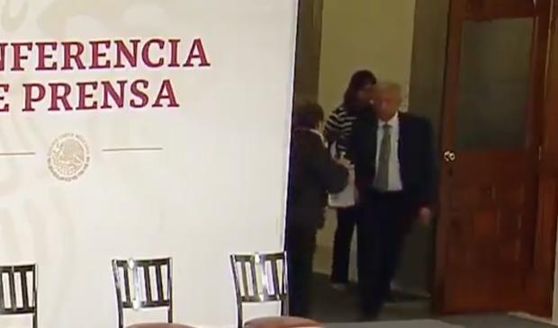 A través de Twitter, el periodista Pascal Beltrán publicó un video donde se observa a los funcionarios de salud salir al salón para participar en la conferencia matutina, mismos que se colocan el gel antibacterial y al momento de salir López Obrador, él solo le da una palmada a la trabajadora y no se coloca el gel.