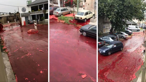 Varias calles de la ciudad de Morón, en la provincia argentina de Buenos Aires, fueron inundadas de sangre la tarde de este lunes, tras reventarse un tanque en un matadero.