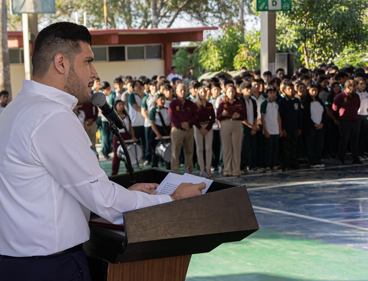 El alcalde Alberto Granados Fávila encabezó este lunes la ceremonia cívica de honores en el CBTIS 135 en do