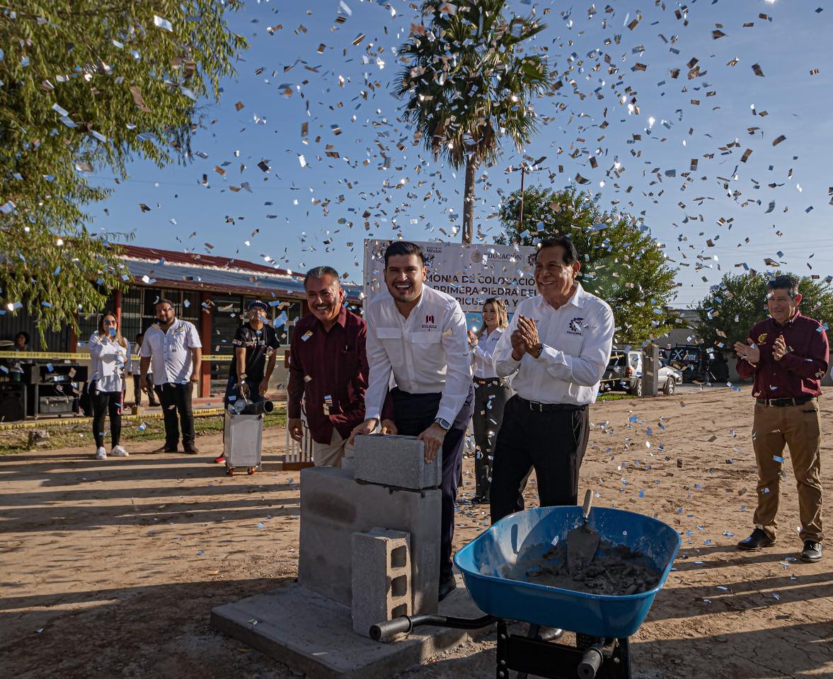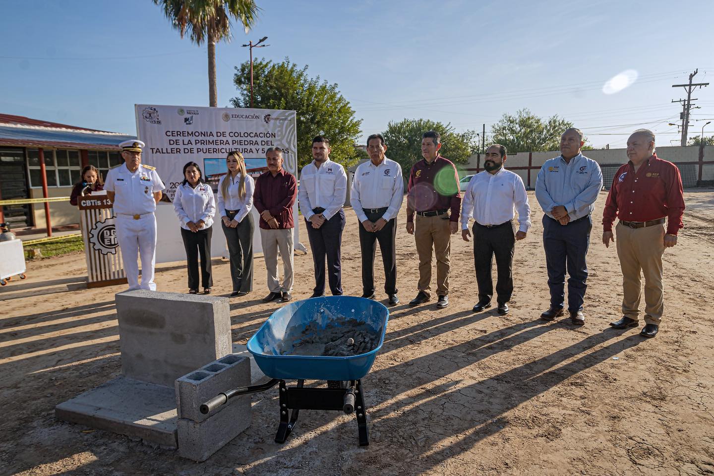 De forma visionaria y entusiasta el alcalde y autoridades educativas colocaron la primera piedra de lo que serán cinco aulas nuevas y el Taller de Puericultura que beneficiará a los más de 3 mil 200 alumnos que conforman este importante plantel en Matamoros y Tamaulipas que ha destacado a nivel nacional.