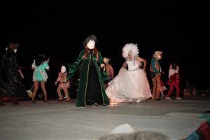 En esta importante tradición de la huasteca que por 13 años se ha celebrado en Palmares, fue amenizada la noche de este 2 de noviembre por cinco comparsas integradas por hombres y mujeres disfrazados de catrinas, calaveras, catrines, charros, quienes bailaron al ritmo de sones y huapangos.