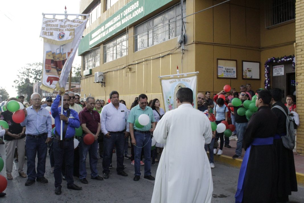 Con profunda fe, el Sindicato de Jornaleros y Obreros Industriales y de la Industria Maquiladora desarrollo su tradicional peregrinación hasta la Iglesia de Nuestra Señora de Guadalupe.