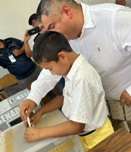 Junto a su hijo el candidato de MORENA cumplió su deber cívico y dijo que se mantendrá a la espera de resultados.