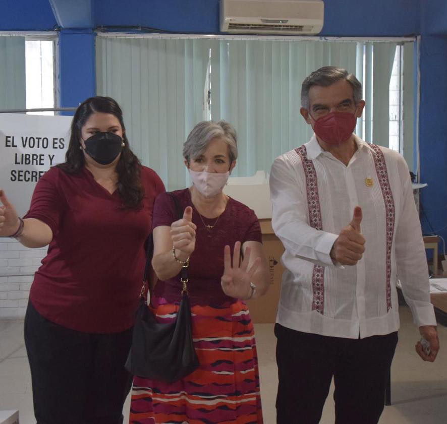 Junto a su esposa María de Villarreal, se le vio sonriente y dijo estar convencido de que los resultados lo favorecerán.