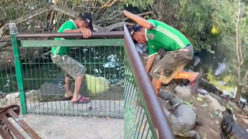 Un enorme cocodrilo atacó a un hombre en el mirador de la Laguna del Carpintero, cuando el sujeto invadió su hábitat para patearlos; las imágenes quedaron grabadas por turistas.